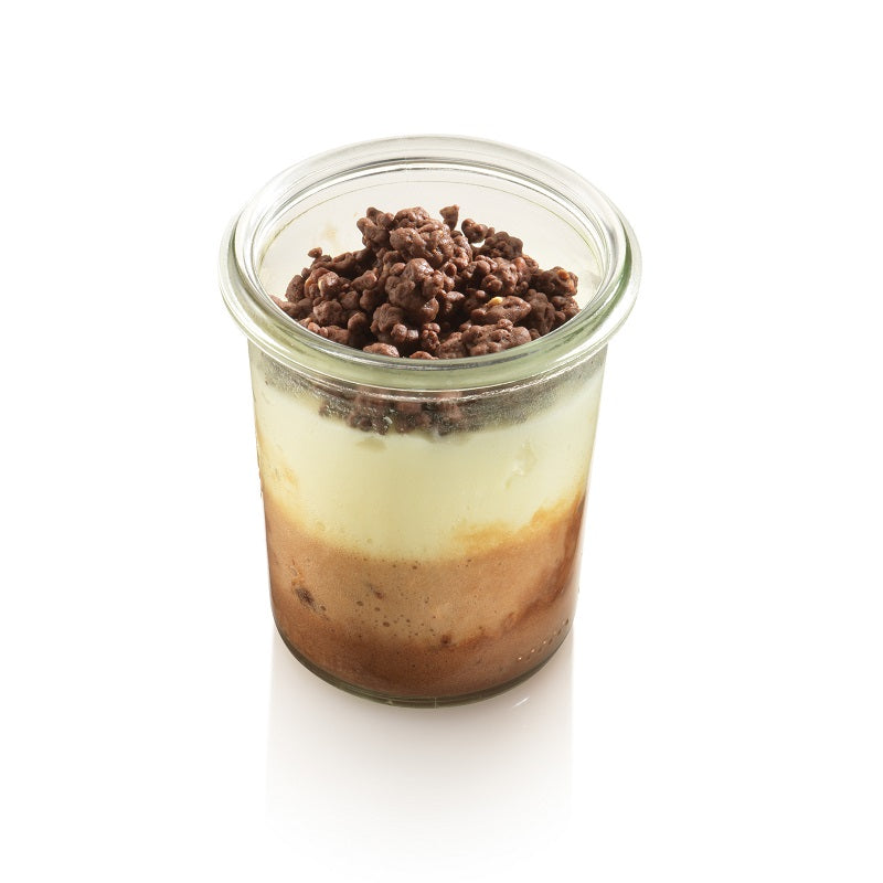 Das Schokoallerlei für's Weck vereint verschiedene Texturen und Schokoladensorten in einem eleganten Glas. Ob als hochwertiger Snack zwischendurch oder als Highlight auf dem Dessertbuffet – dieses Schichtdessert bietet vollen Geschmack bei minimalem Aufwand.